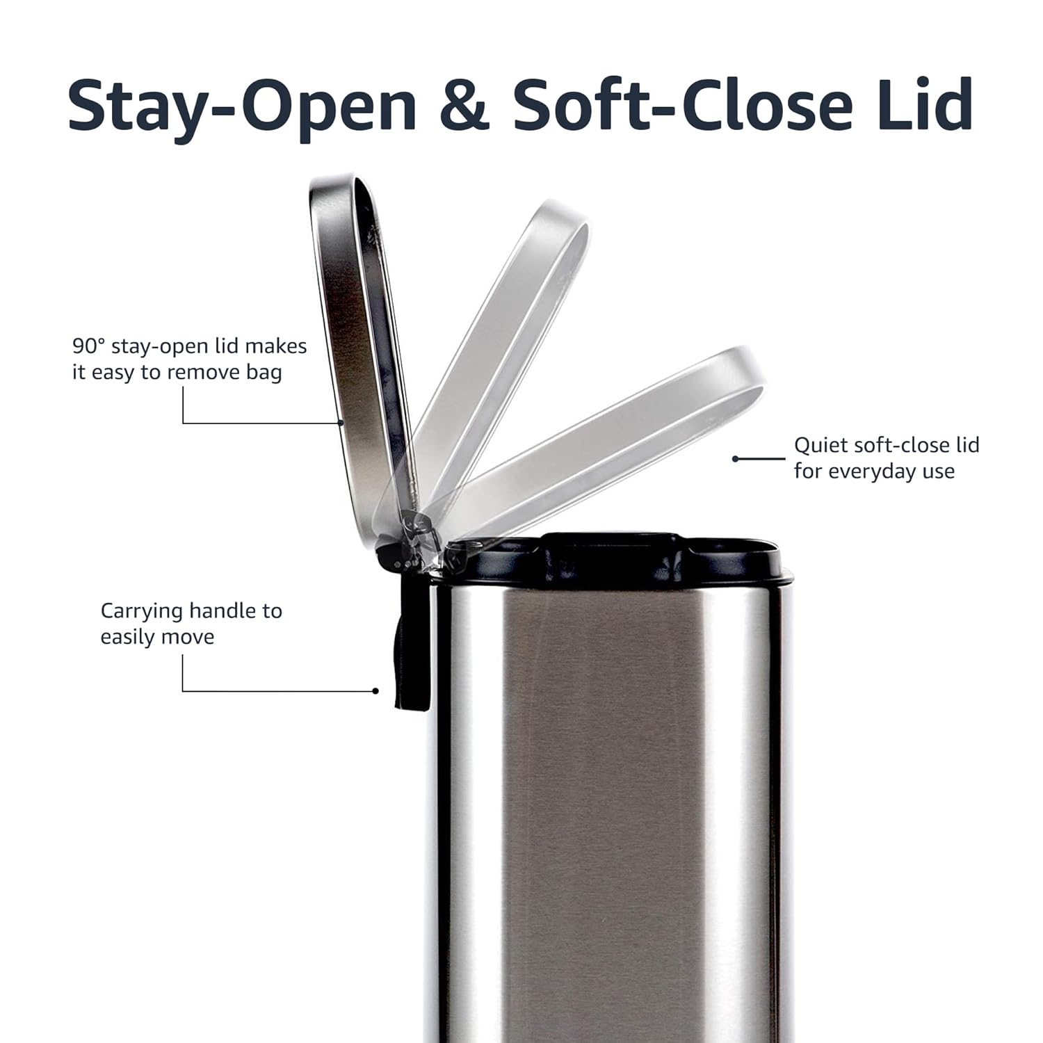 Amazon Basics Smudge Resistant Small Rectangular Trash Can With Soft-Close Foot Pedal, Brushed Stainless Steel, 12 Liter/3.1 Gallon, Satin Nickel Finish, 11.3"L x 9.9"W x 15.1"H