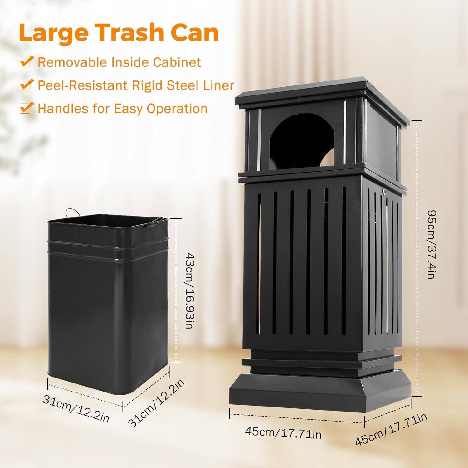 BEAMNOVA Black Trash Can Outdoor Top Tray Stainless Steel Commercial Garbage Enclosure with Locking Lid Heavy Duty Industrial Yard Garage Waste Container, 37.4 * 17.7 * 17.7in