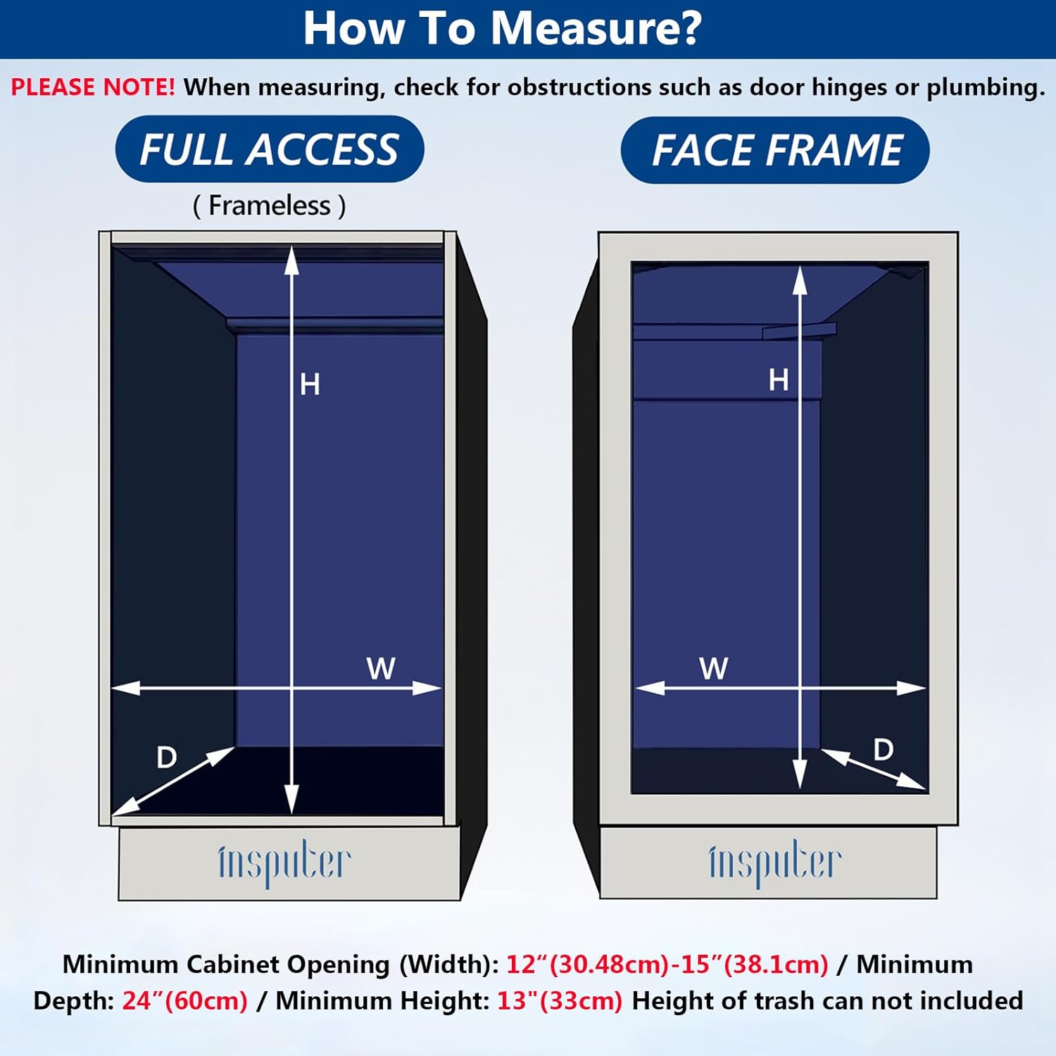Insputer Pull Out Trash Can Under Cabinet with Soft-Close Slides, Heavy Duty Under Sink Trash Can Kit for Kitchen, Garbage Can Not Included, Requires Minimum Cabinets Opening 12" W X 18" D