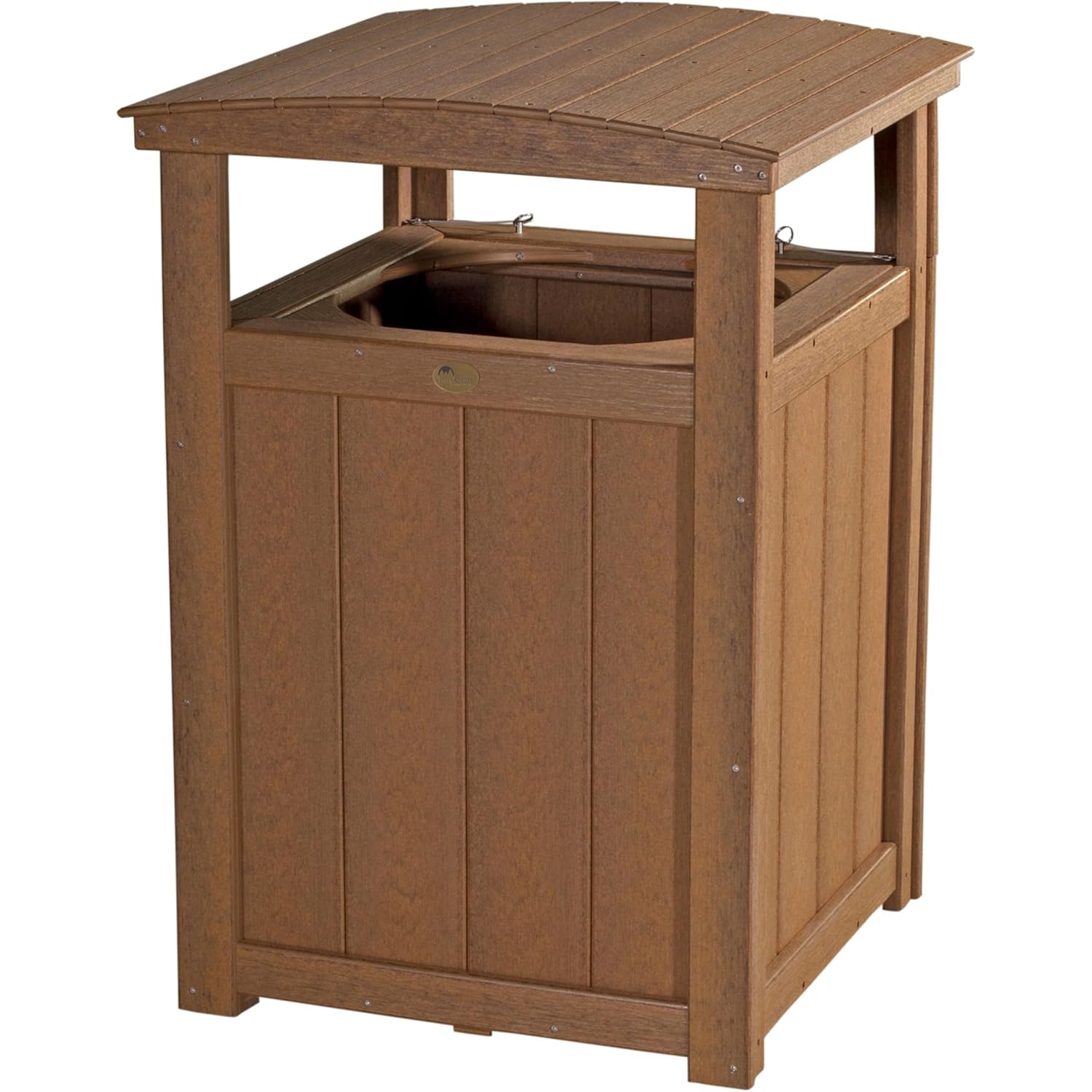 LuxCraft Poly Outdoor Trash Can, Garbage Can Outdoor - Durable All Weather Commercial Trash Can & Residential Outdoor Trash Bin for Patio Pool Park Business and Personal (Antique Mahogany & Black)