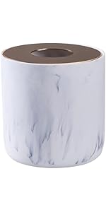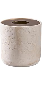 Natural Travertine Textures Mini Trash Can with Rose Gold Stainless Steel Lid, Mini Countertop Trash Can for Bathroom Kitchen, Desk or Table top Mini Garbage Can, Resin Tiny Waste Basket for Vanity