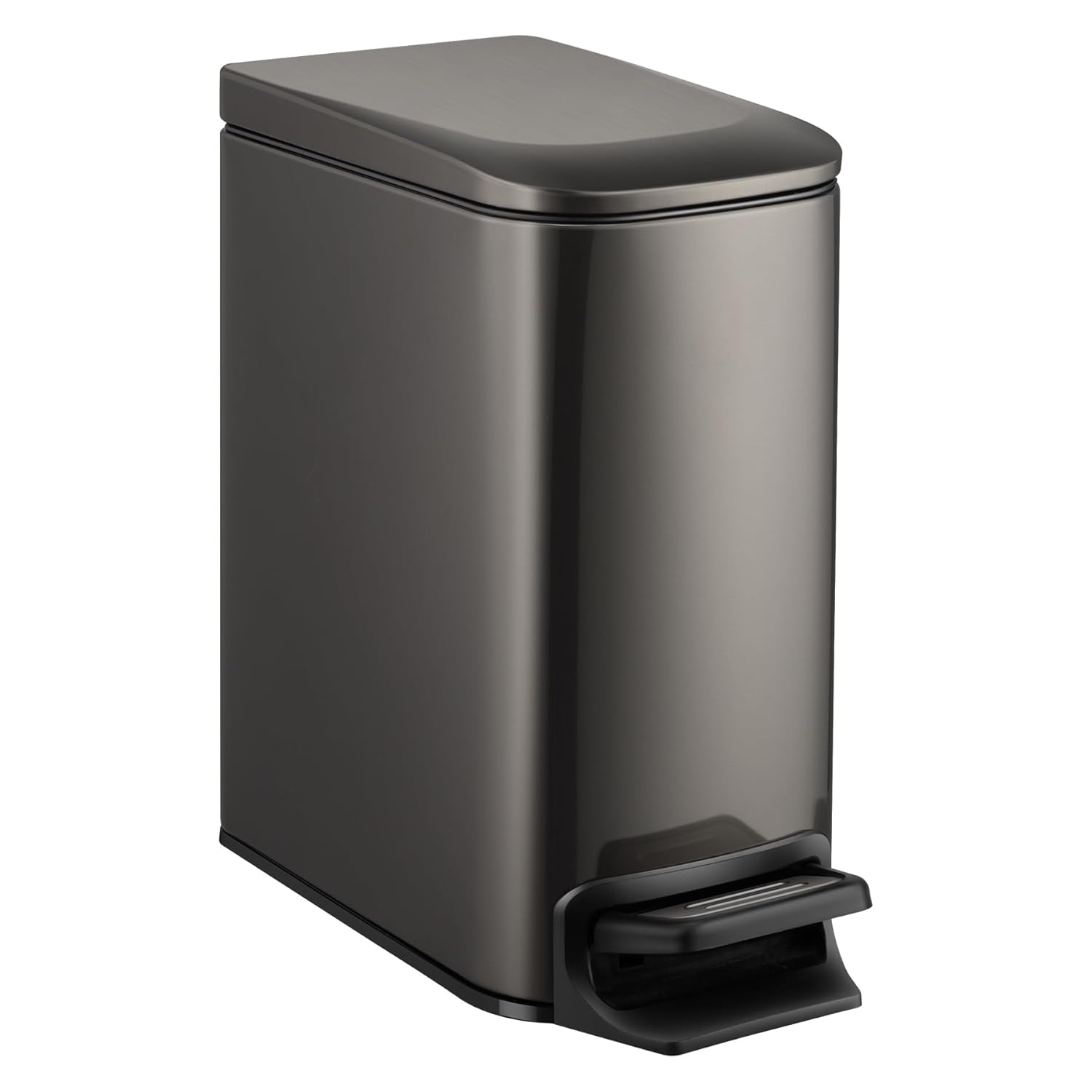 TIPGO Slim Bathroom Trash Can with Lid Soft Close, 6 Liter / 1.6 Gallon Stainless Steel Garbage Can with Removable Inner Bucket, Step Pedal, Small Trash Cans for Bedroom, Office, Kitchen (Green)